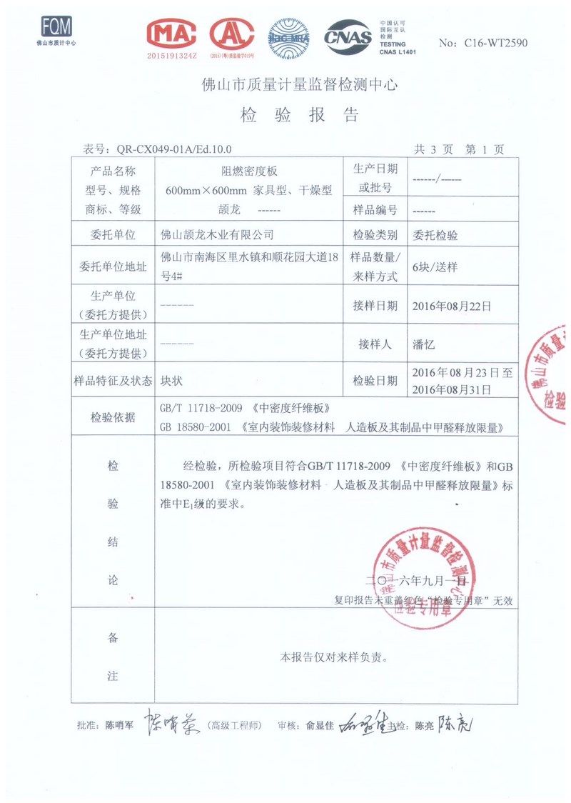 佛山頡龍木業(yè)有限公司,成立于2015年7月,集多種特殊板材的研發(fā),生產(chǎn),銷售于一體。主打產(chǎn)品包括有阻燃密度板,阻燃膠合板,A級阻燃板,防潮密度板等等。其標準有(國標B1-C,國標B1-B,美標ASTME84-A,英標BS476,歐標EN13501,澳標AS5637.1)廣泛應(yīng)用于建筑裝飾、酒店裝修、家具制造、隔斷墻和地板等行業(yè)。產(chǎn)品的穩(wěn)定性,優(yōu)質(zhì)的服務(wù)得到業(yè)內(nèi)的認可。 佛山頡龍木業(yè)有限公司,自創(chuàng)立以來,以“誠信為本,優(yōu)質(zhì)產(chǎn)品,共贏互利”為發(fā)展宗旨,致力于打造優(yōu)質(zhì)功能板材。